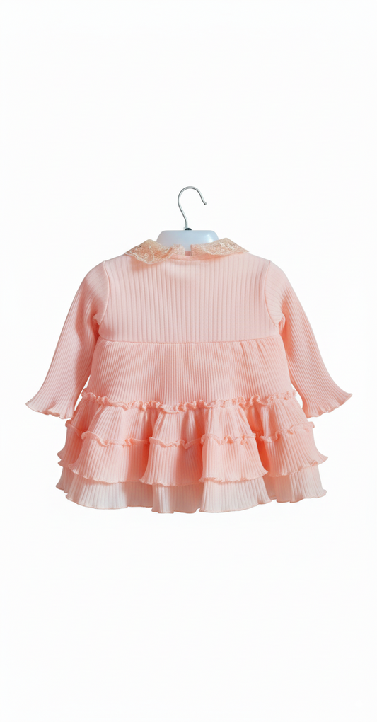 Baby Girls’ Soft Knit Ruffle Dress – Peach Pink (Winter/Autumn Wear)