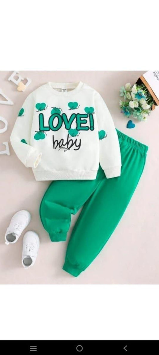 Baby & Kids “LOVE Baby” Printed Sweatshirt and Jogger Set – Green & White